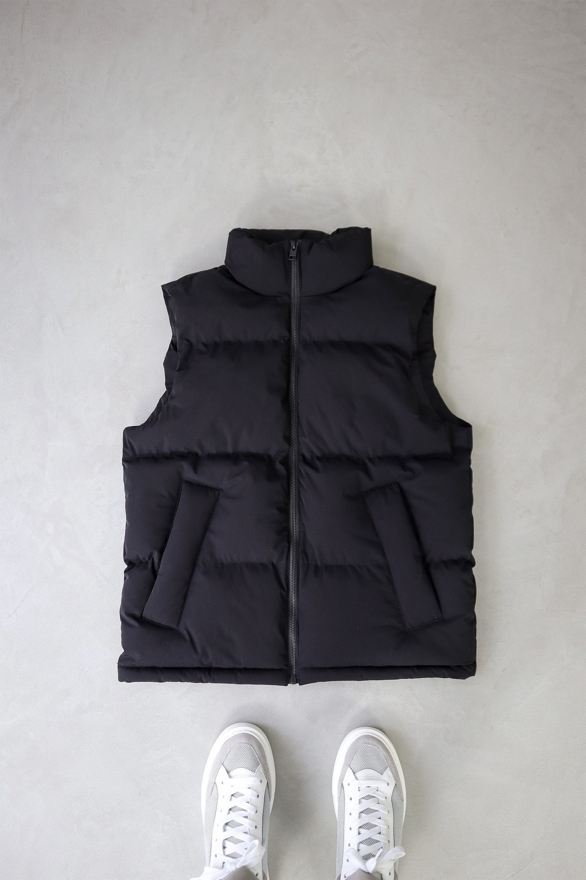 Puff But No Fluff. 100% Nylon. 100% Wind Proof. 100% Water Resistant. The Bruno Body Warmer is a fresh, oversized gilet, constructed to look clean. Get comfortable with 4-way stretch fabric, 2 inside adjustable toggles, 2 large internal pockets, and 2 zip welt pockets lined with fleece to keep hands toasty.